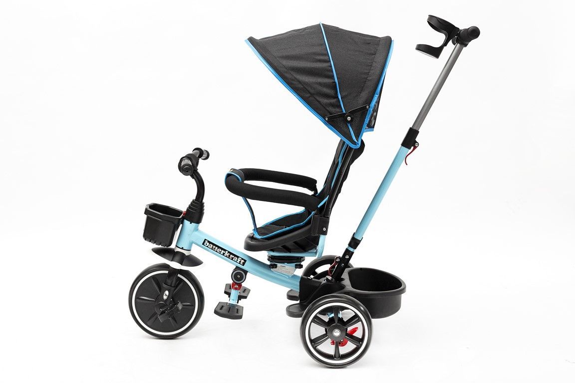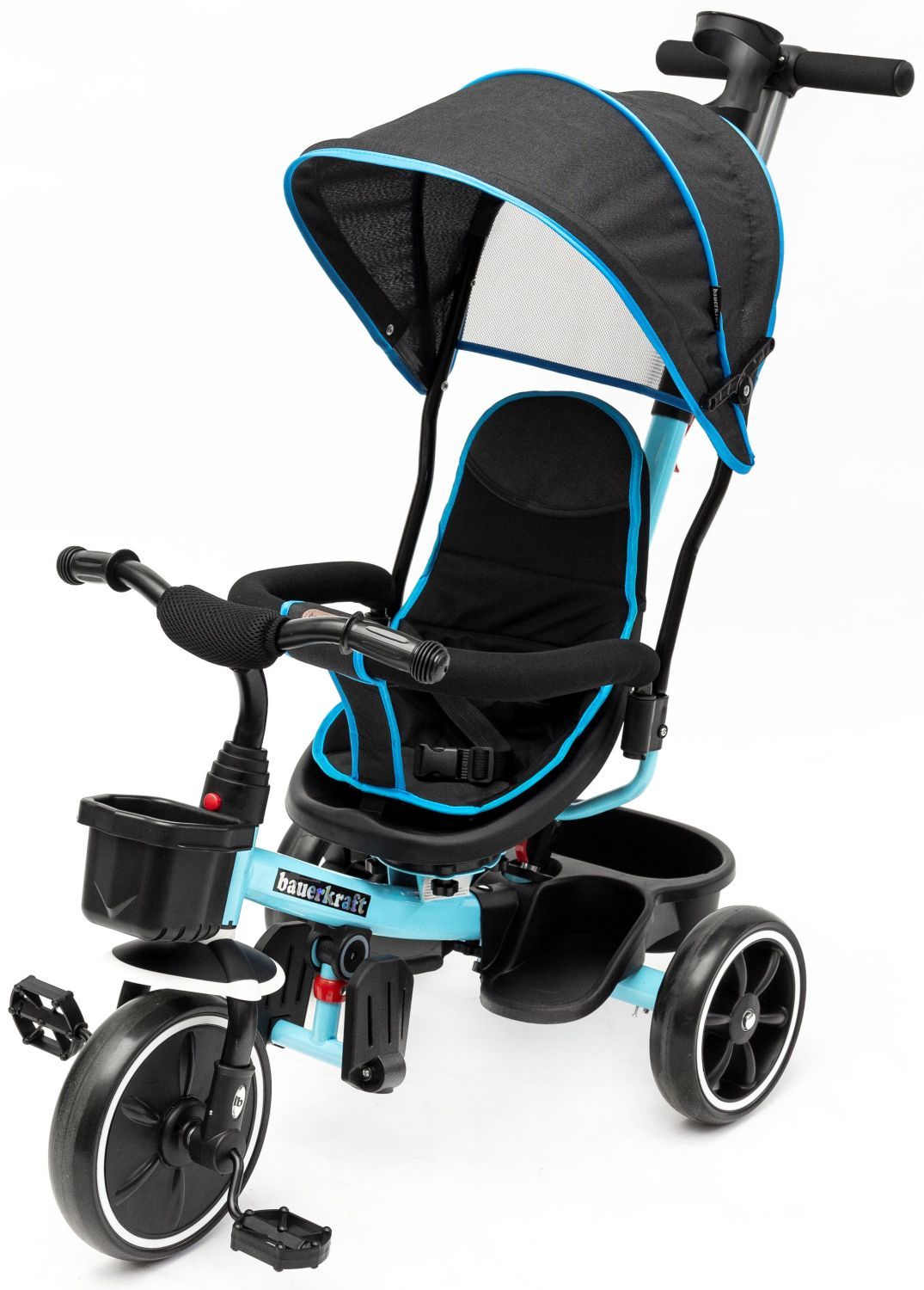 Rowerek trójkołowy Bauerkraft obracany 2w1 wózek jasno niebieski