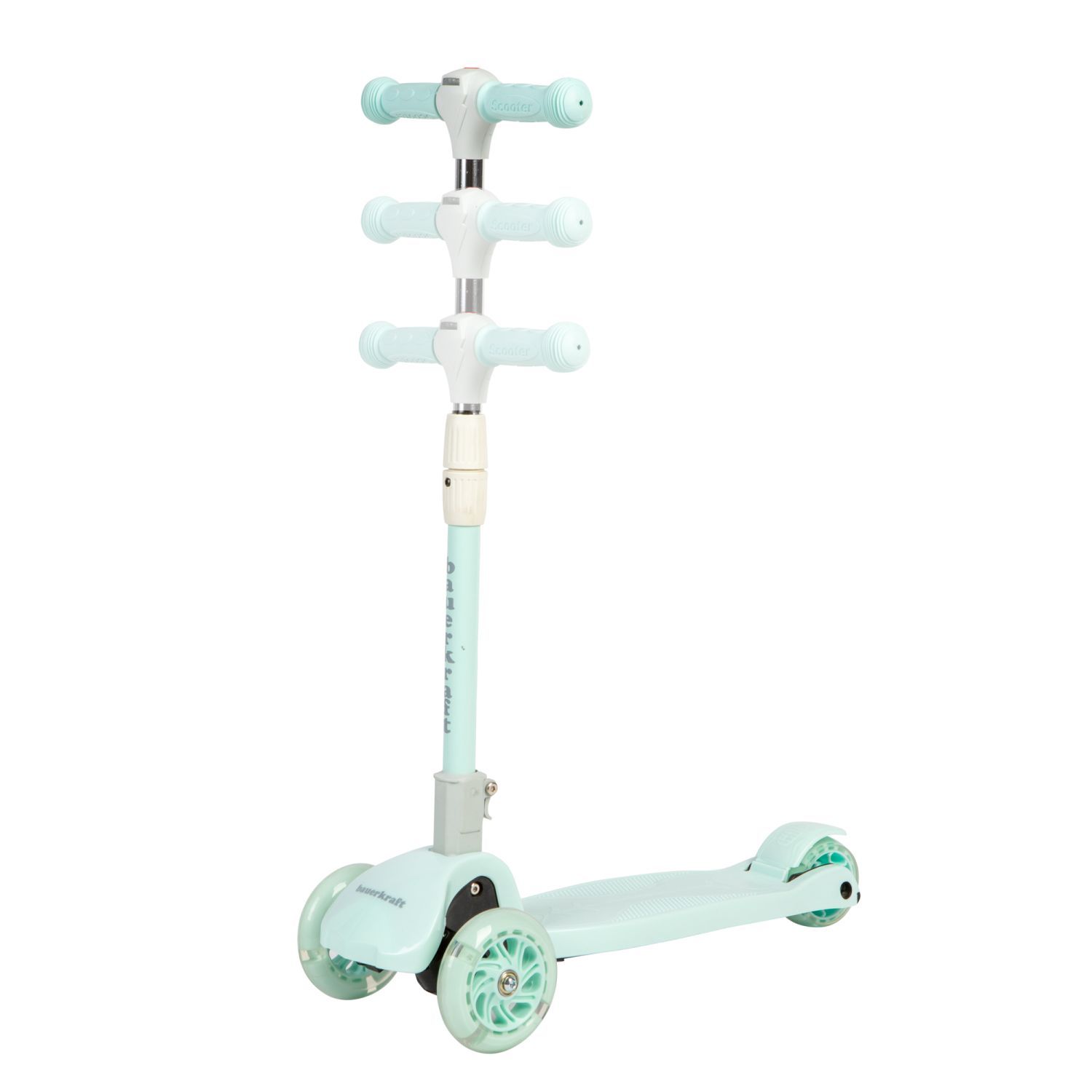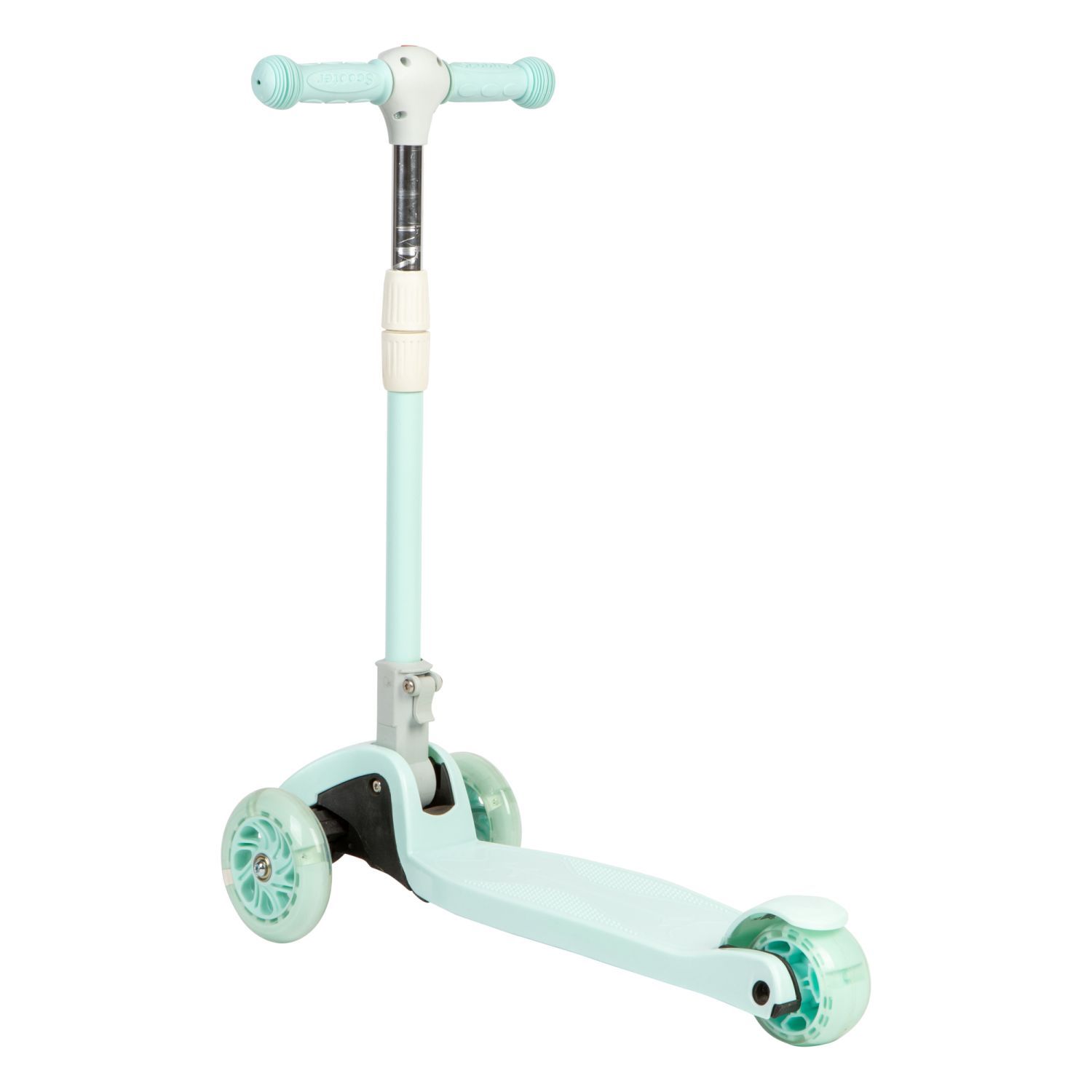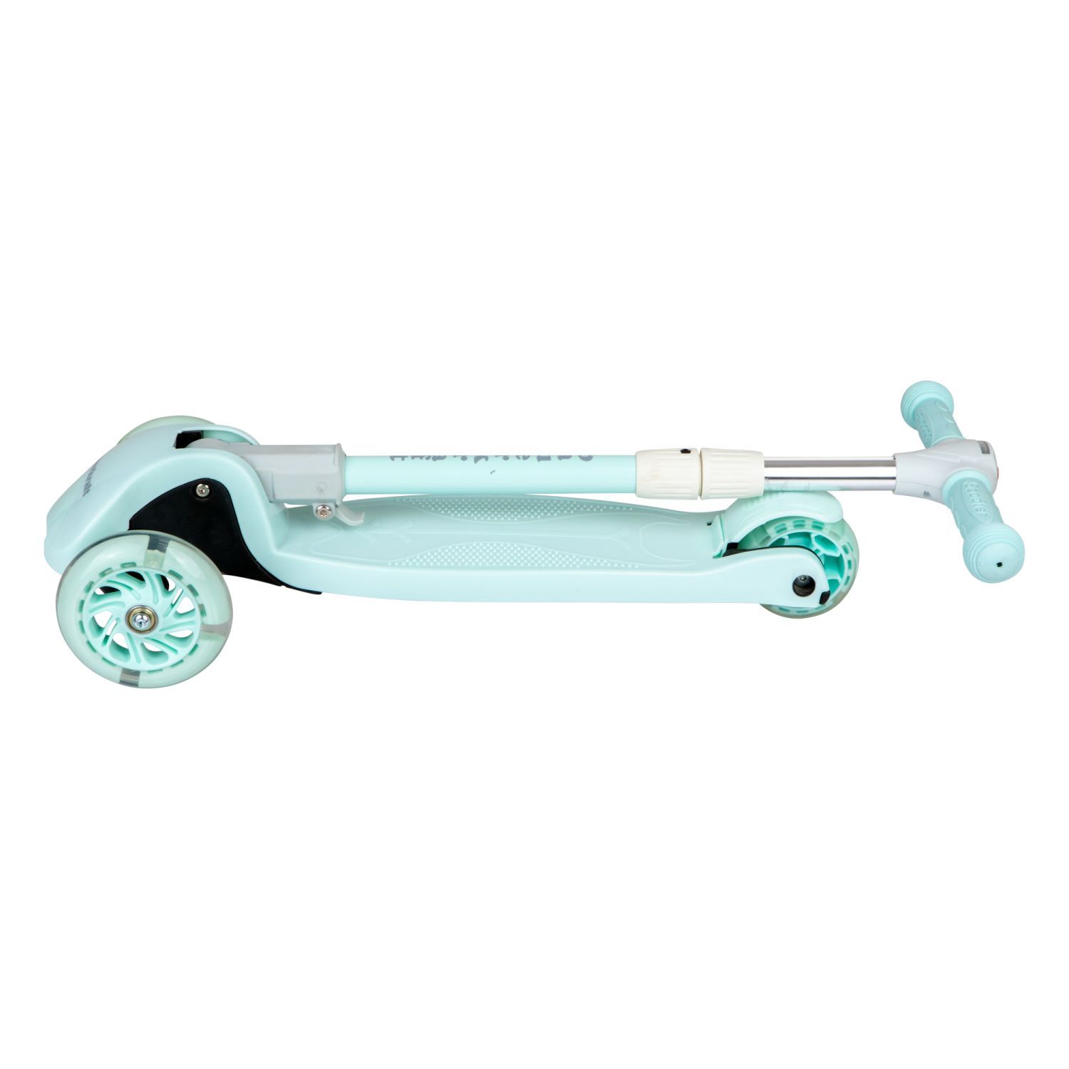 Seledynowa balansowa hulajnoga składana trójkołowa ze świecącymi kołami LED