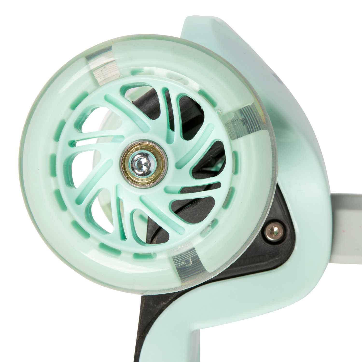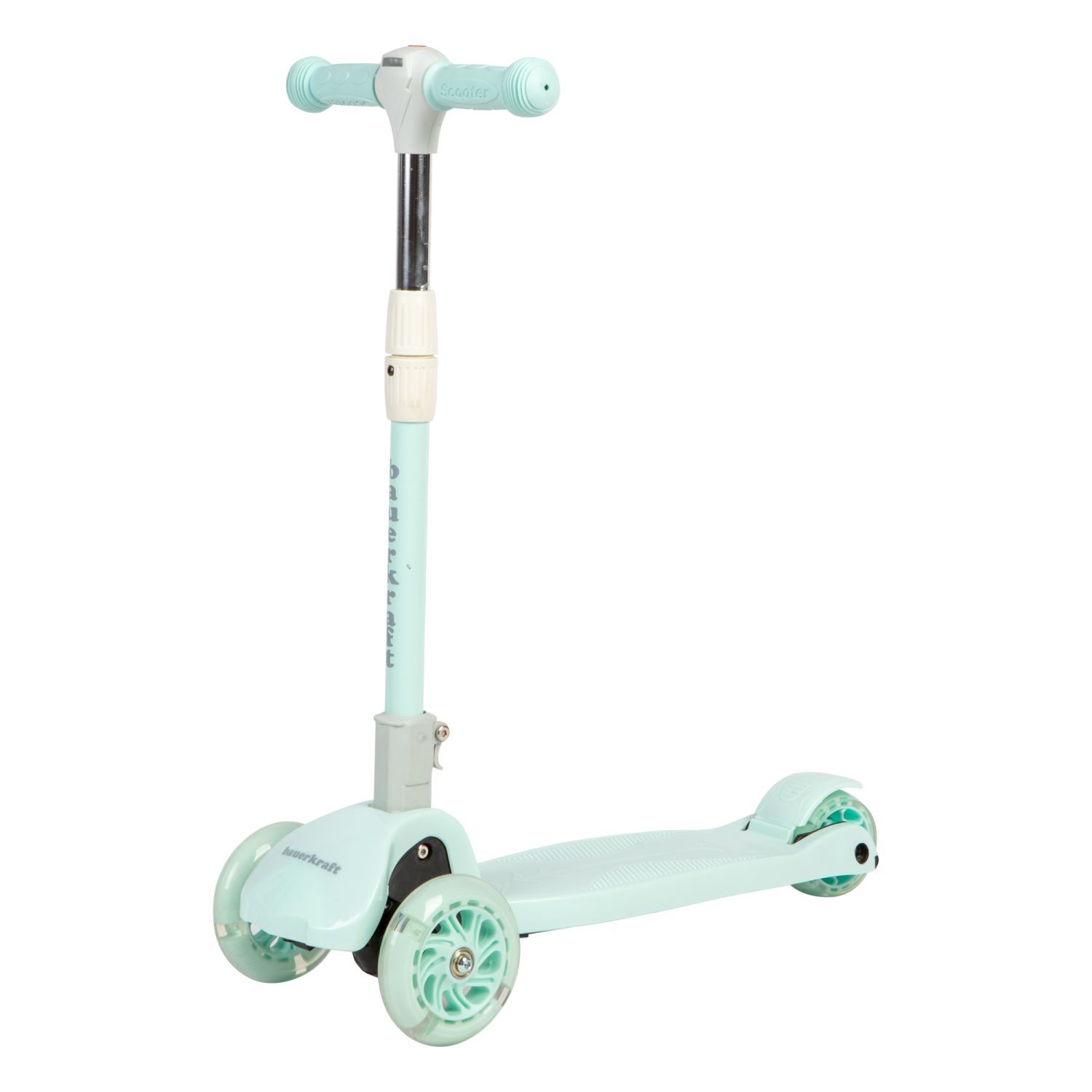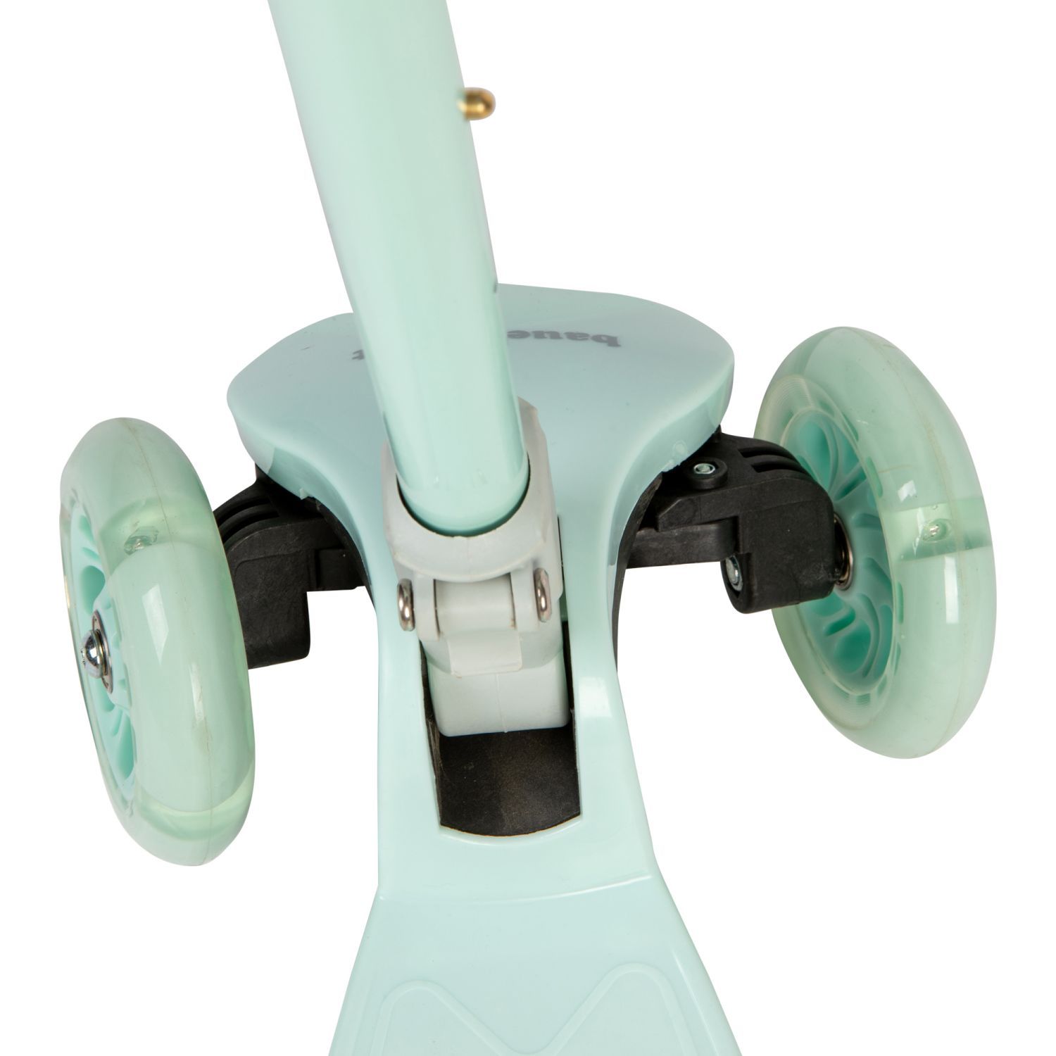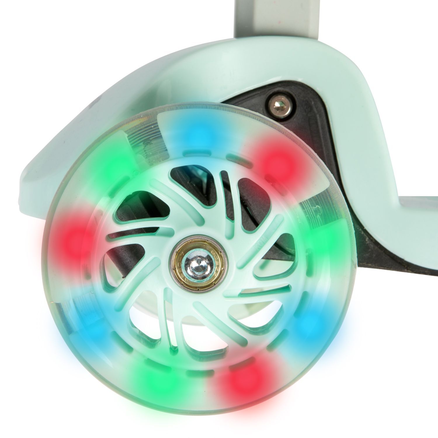 Seledynowa balansowa hulajnoga składana trójkołowa ze świecącymi kołami LED