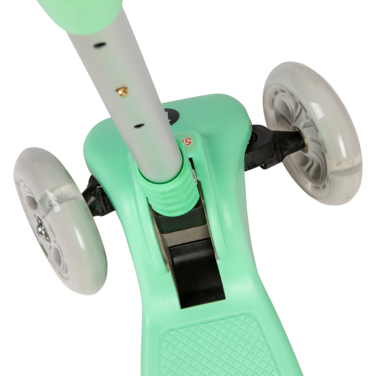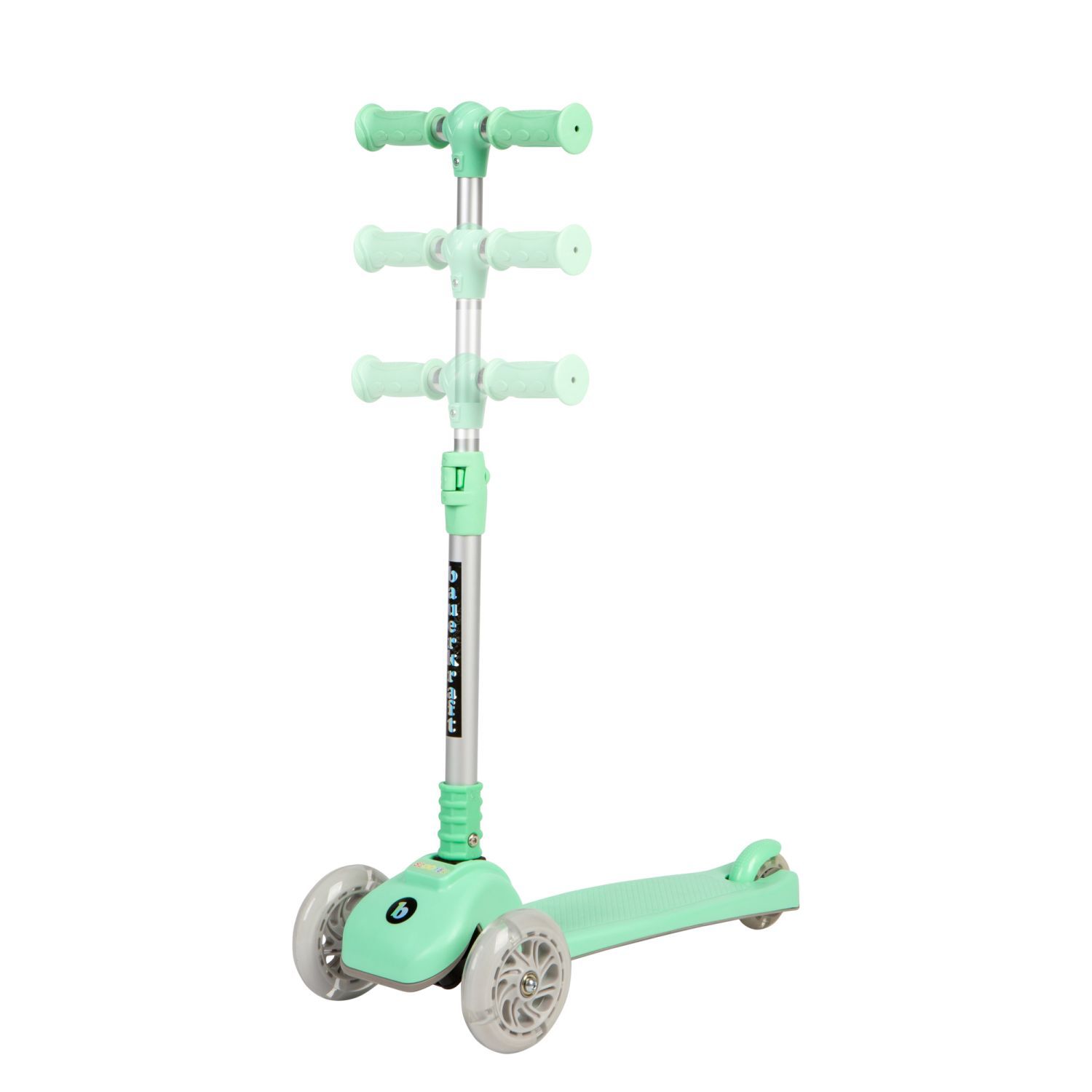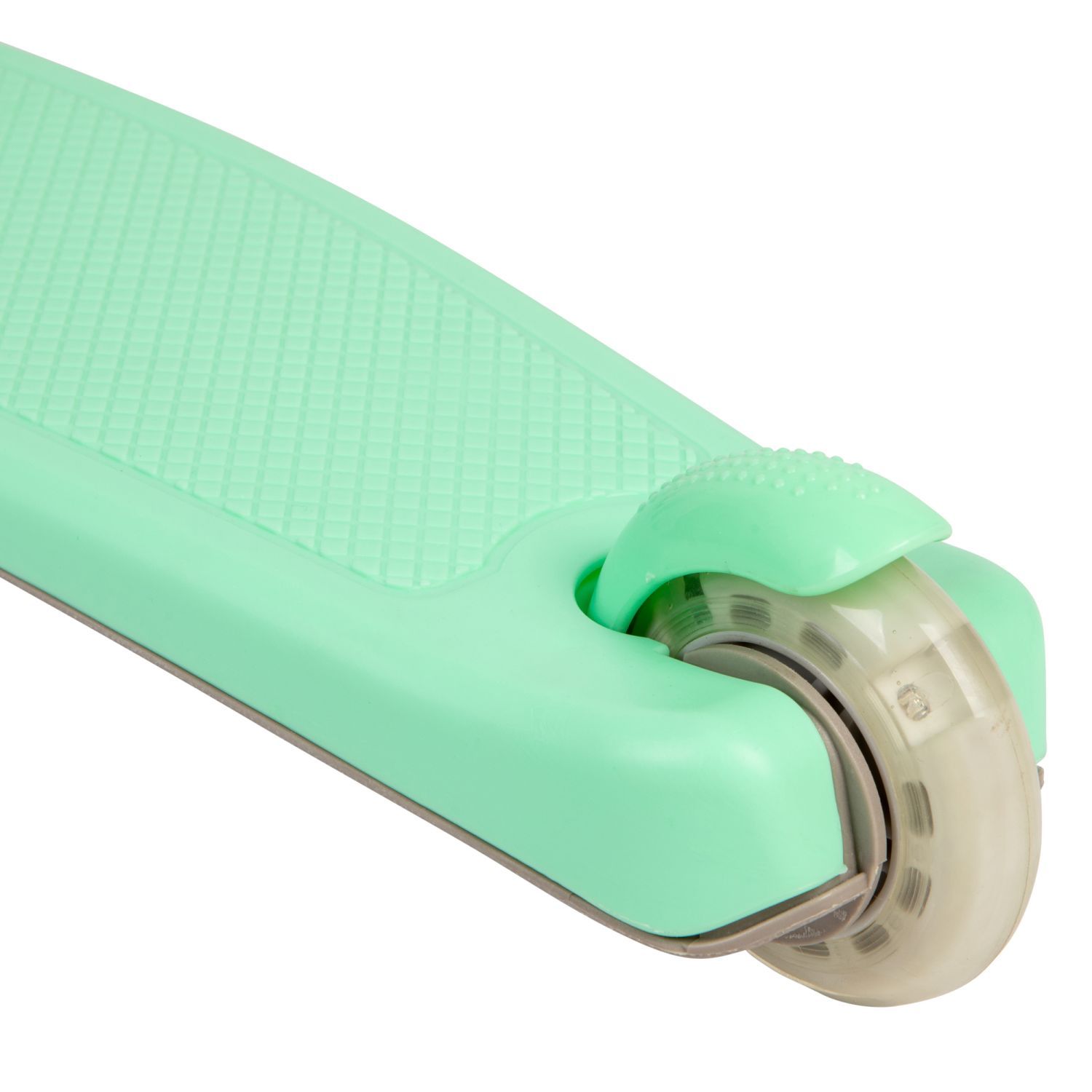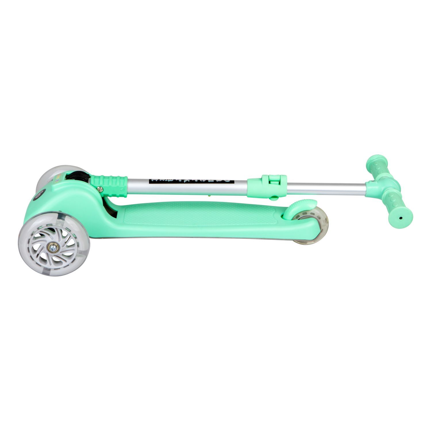 Seledynowa balansowa hulajnoga składana trójkołowa ze świecącymi kołami LED