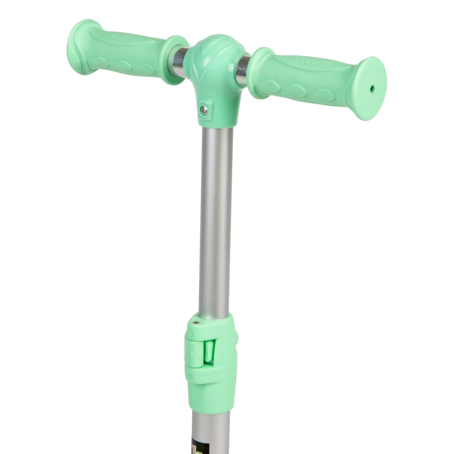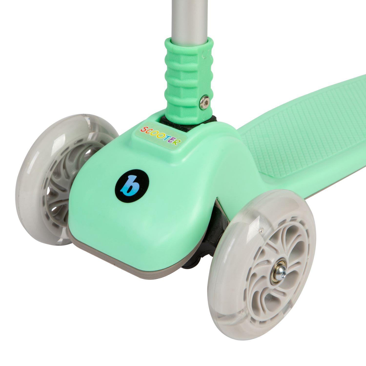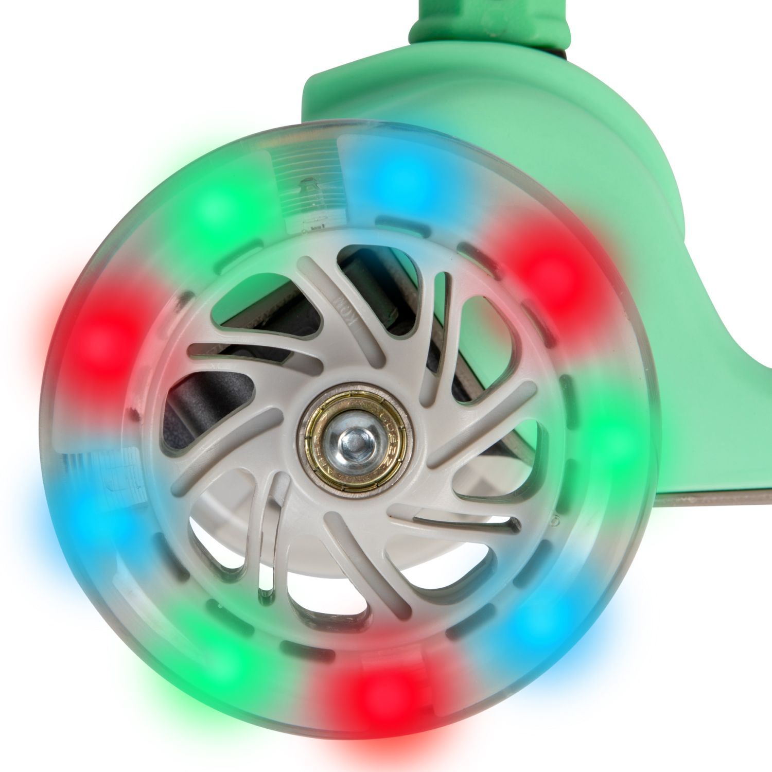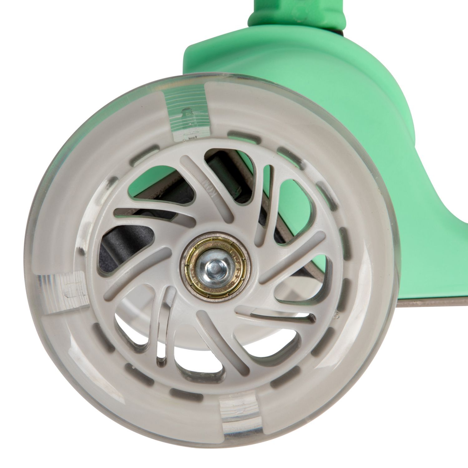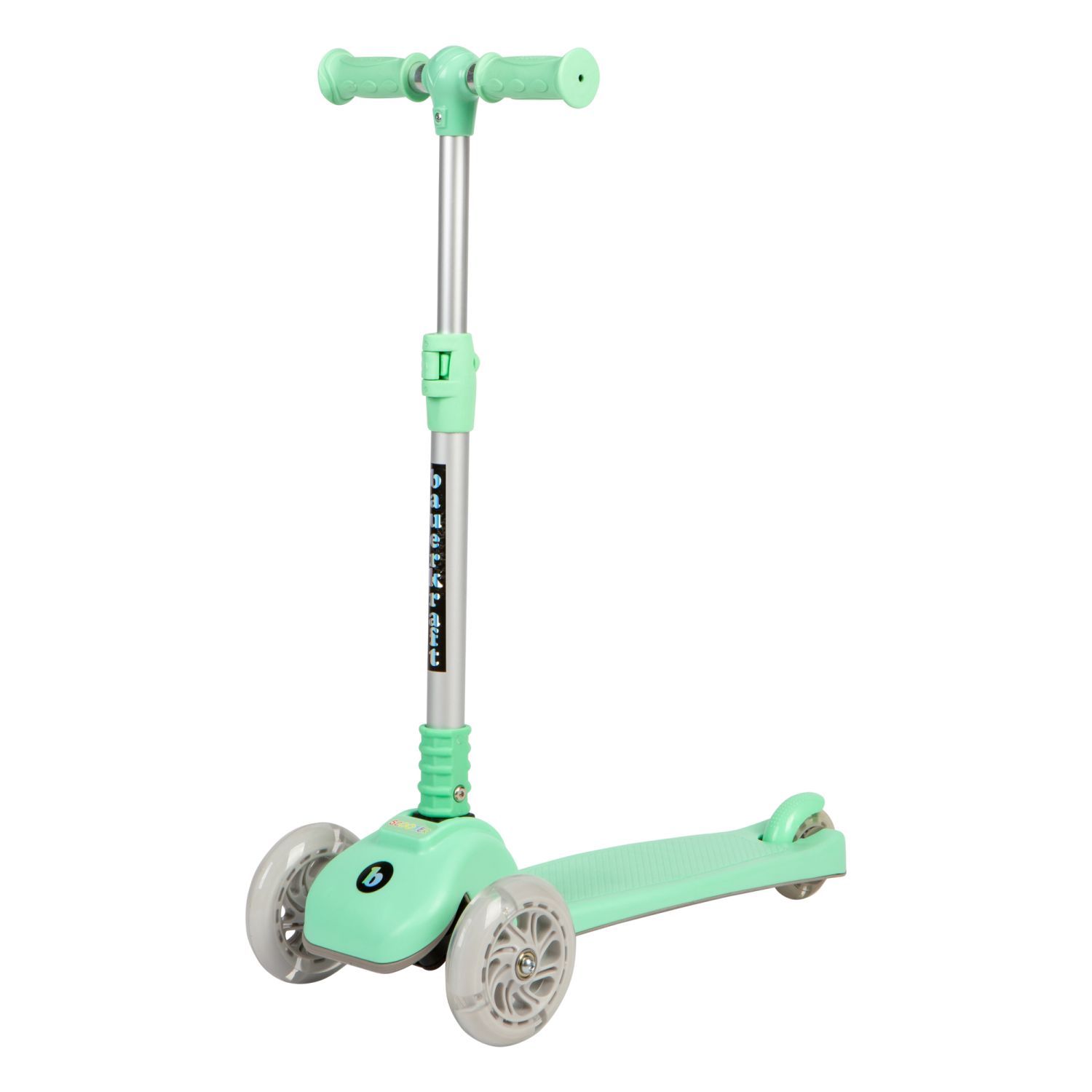Seledynowa balansowa hulajnoga składana trójkołowa ze świecącymi kołami LED