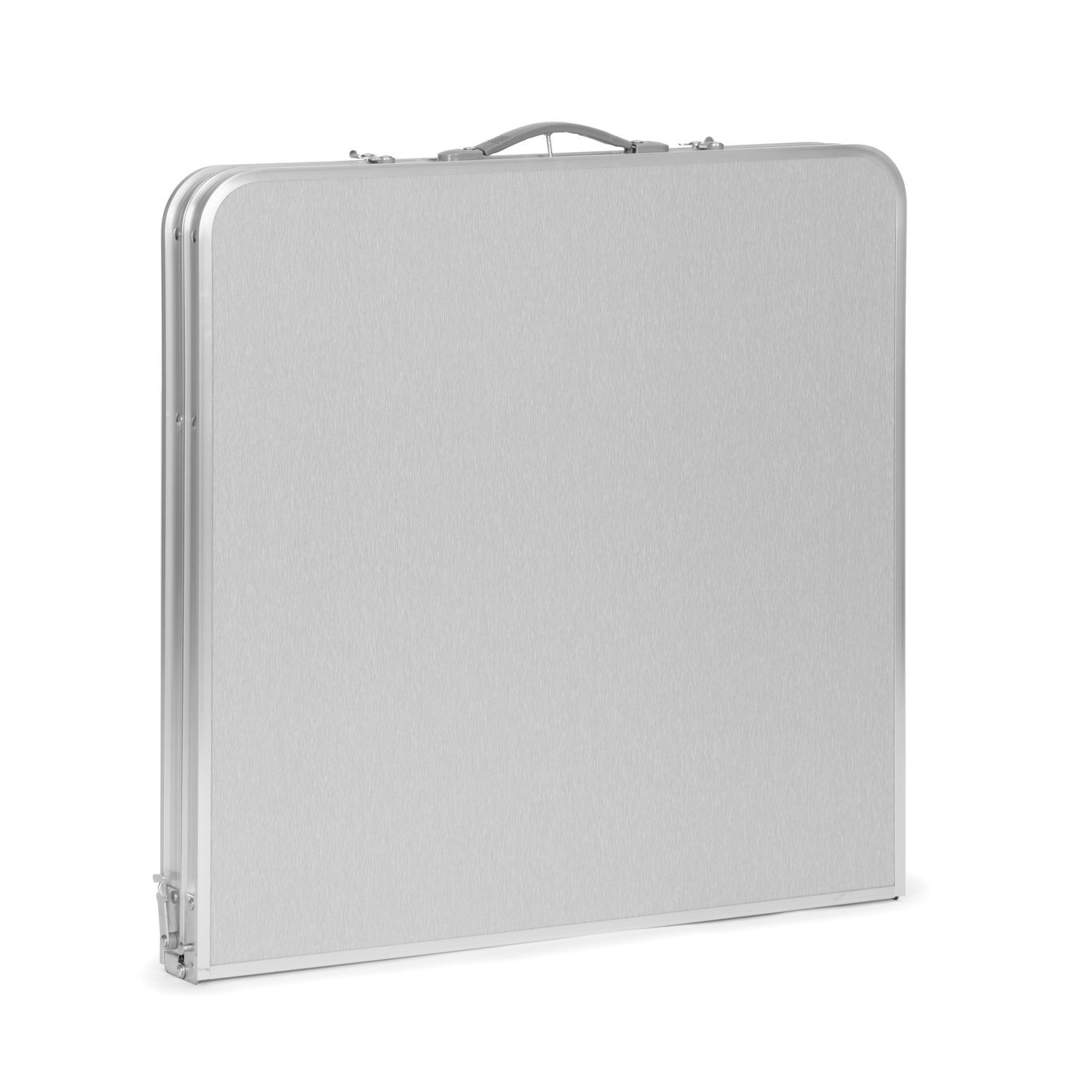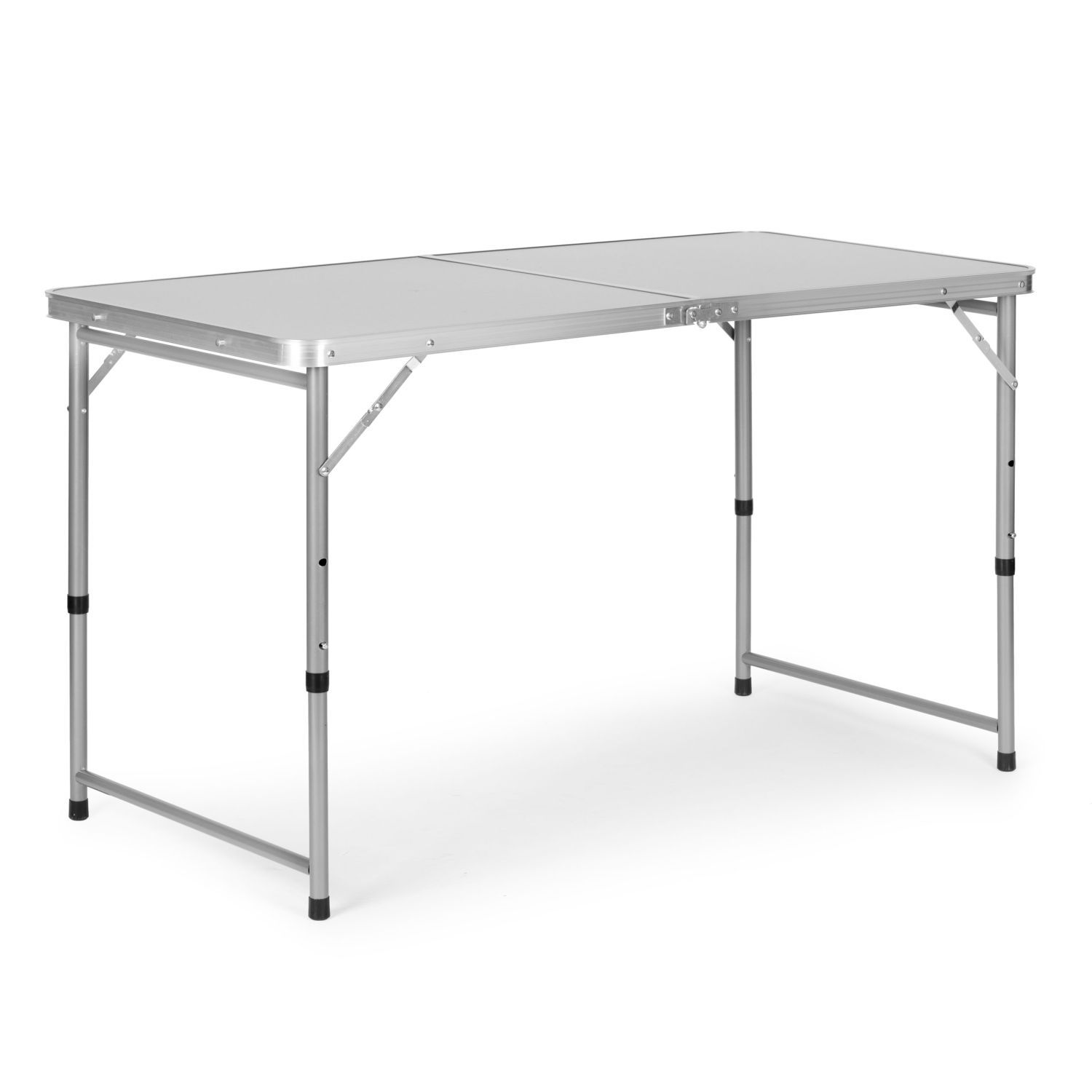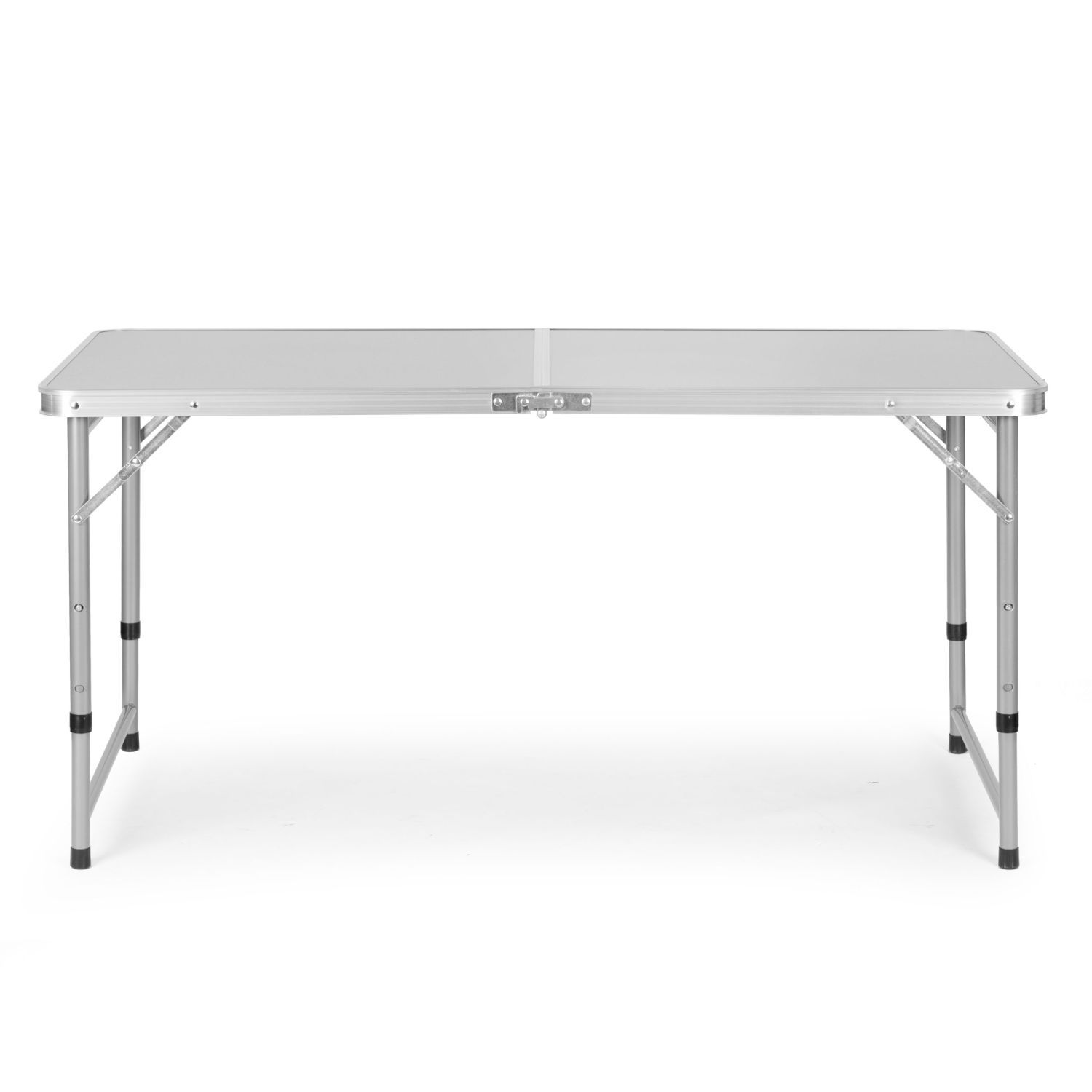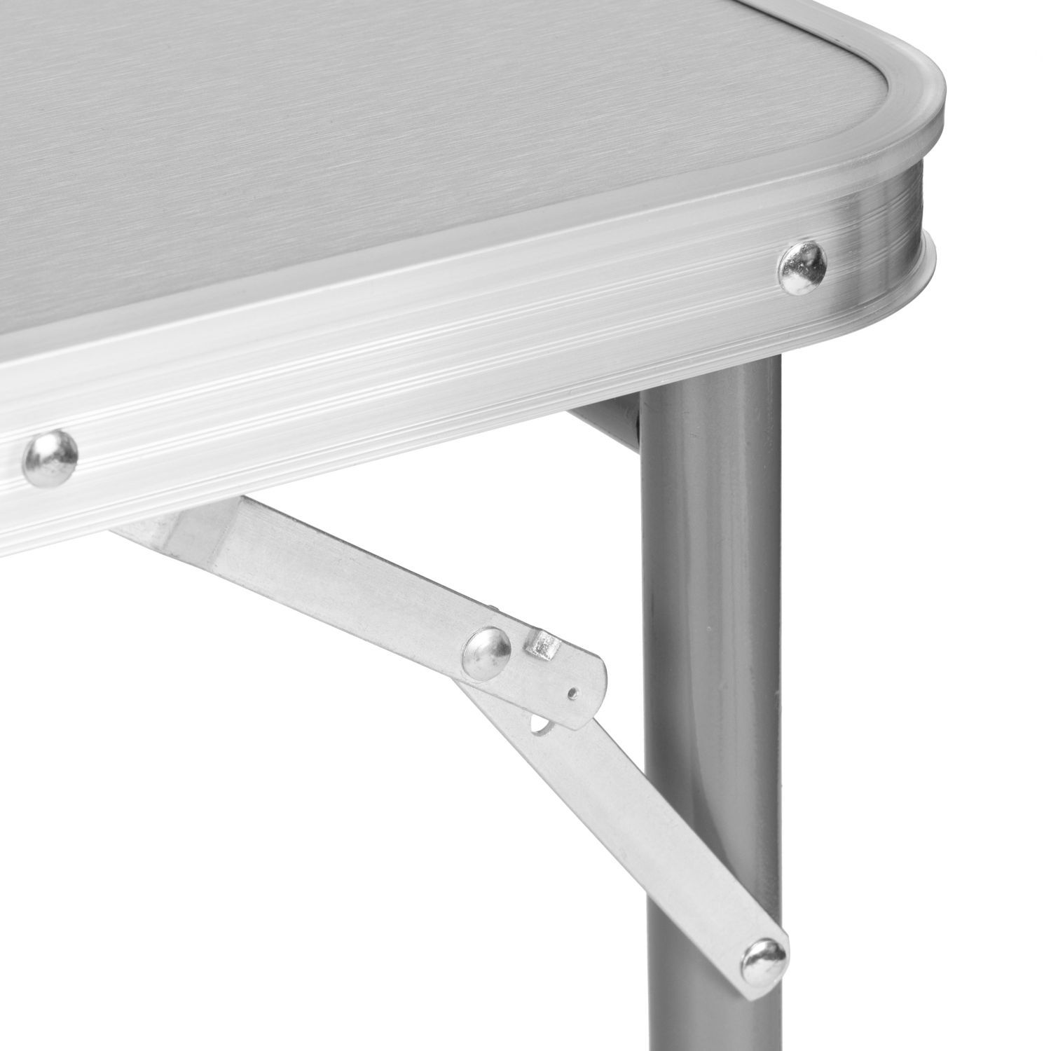 Stół wykonany z dobrej jakości materiałów. Połączenie aluminiowej konstrukcji stelaża z blatem z płyty MDF zapewnia solidność i stabilność stołu. Atutem jest jego niska waga, zapewniająca bezproblemowy transport. Stolik łatwo się rozkłada, a po złożeniu przyjmuje wygodną formę walizki. Wbudowany uchwyt ułatwia przenoszenie. Dodatkową funkcją jest możliwość regulacji wysokości stolika.