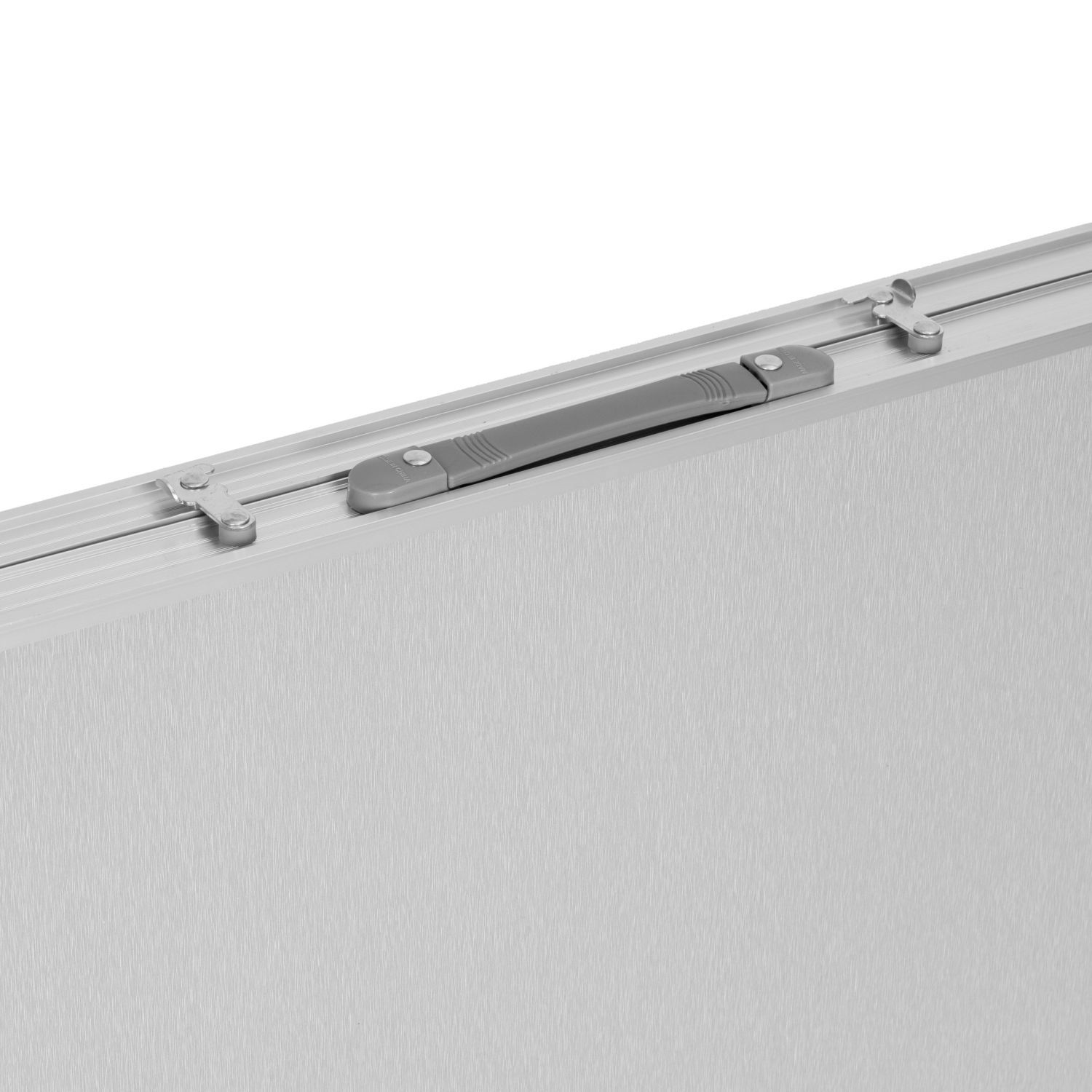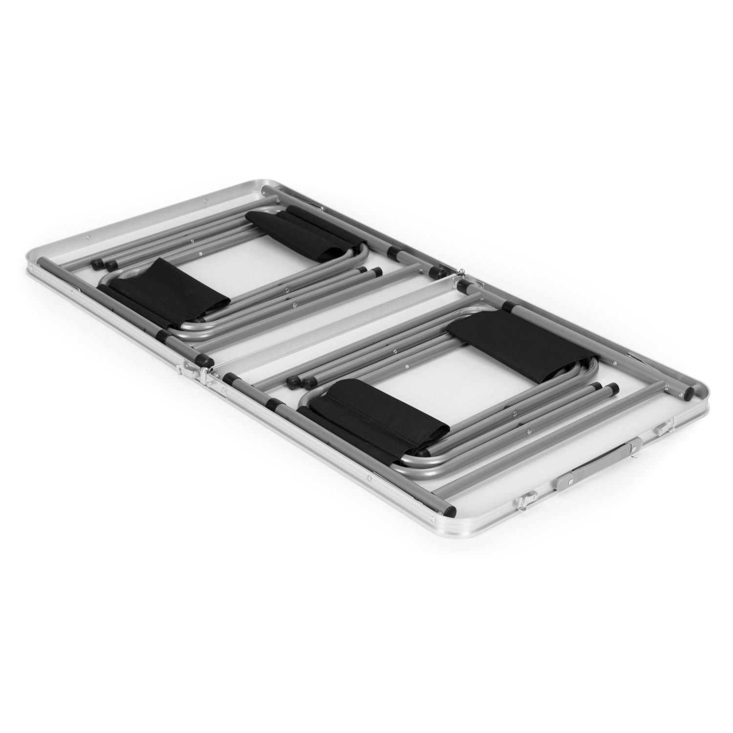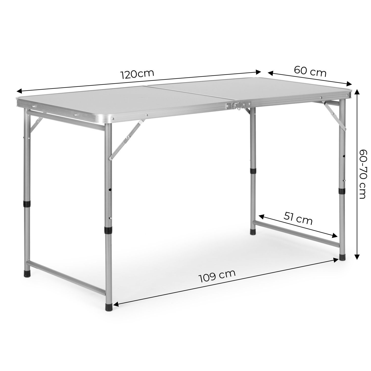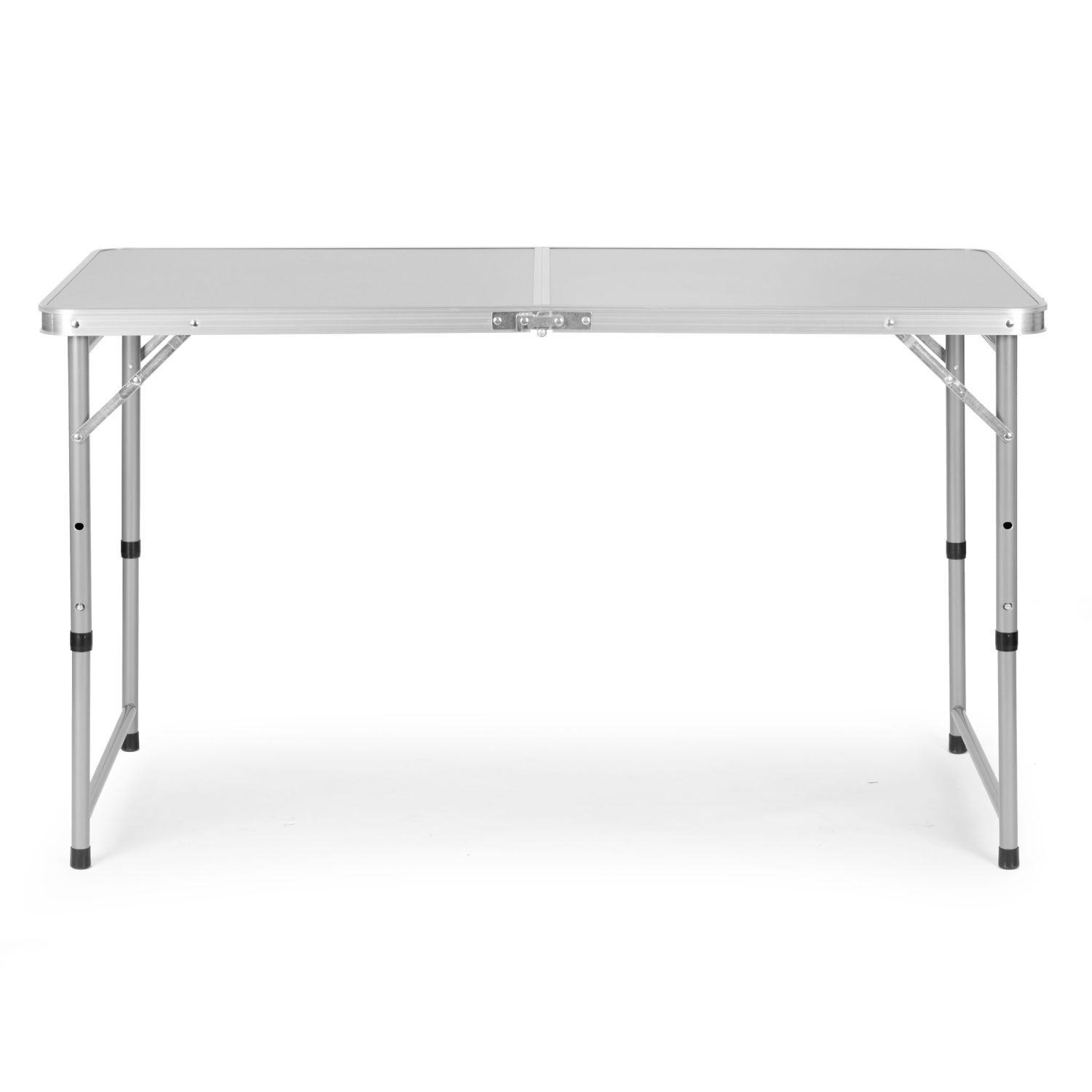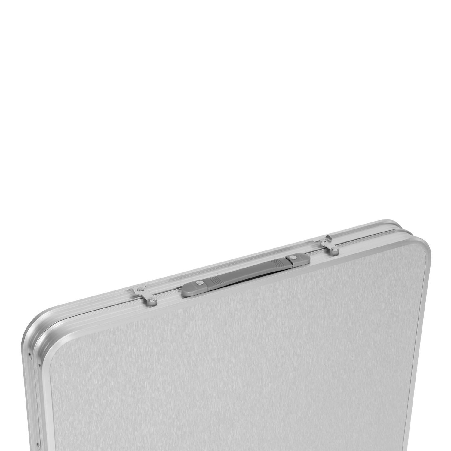 Stół wykonany z dobrej jakości materiałów. Połączenie aluminiowej konstrukcji stelaża z blatem z płyty MDF zapewnia solidność i stabilność stołu. Atutem jest jego niska waga, zapewniająca bezproblemowy transport. Stolik łatwo się rozkłada, a po złożeniu przyjmuje wygodną formę walizki. Wbudowany uchwyt ułatwia przenoszenie. Dodatkową funkcją jest możliwość regulacji wysokości stolika.
