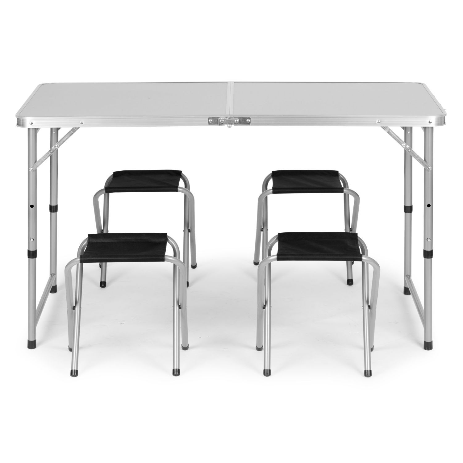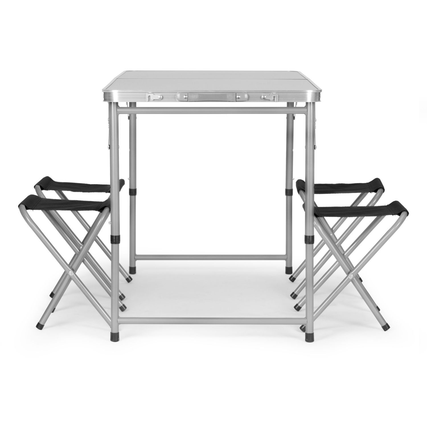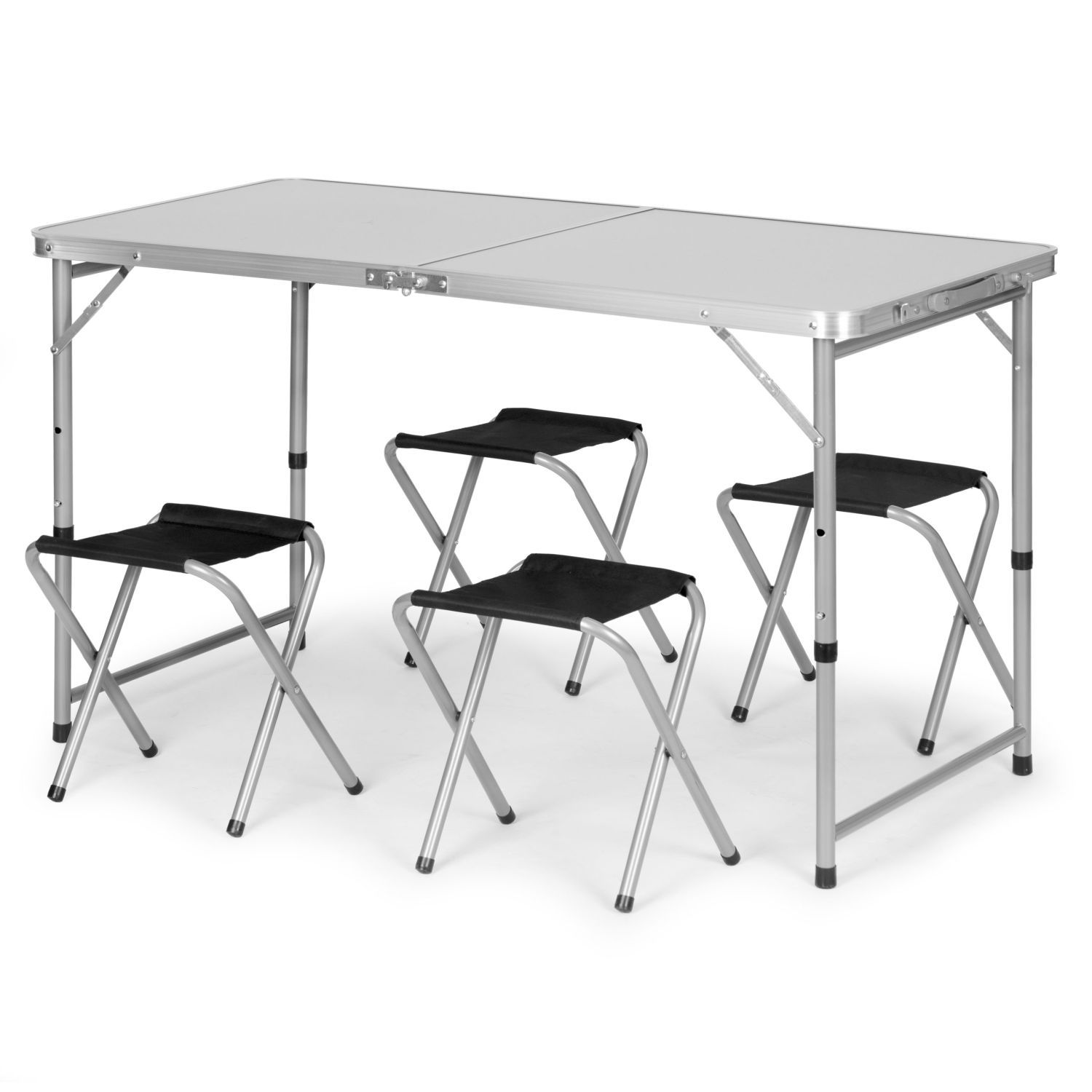 Stolik turystyczny stół składany ogrodowy walizka z uchwytem do przenoszenia i regulacją wysokości i zestawem 4 krzesełek 120x60x70 cm srebrnyStolik turystyczny stół składany ogrodowy walizka z uchwytem do przenoszenia i regulacją wysokości i zestawem 4 krzesełek 120x60x70 cm srebrny